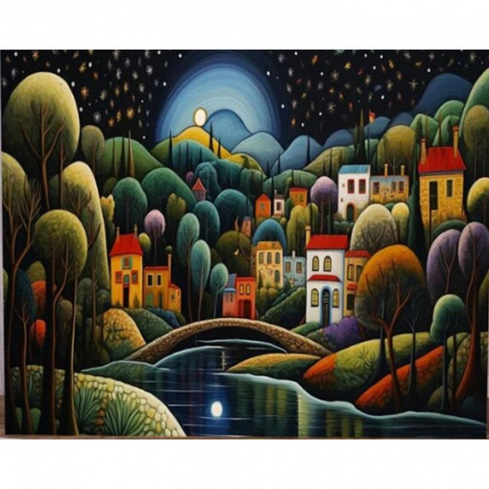 • Pipo Tranh HPI0147 Ngôi Làng Cổ Tích 40x50 DIY Bộ Tranh Nổi Tiếng Vẽ Tranh Sơn Dầu Màu Nước