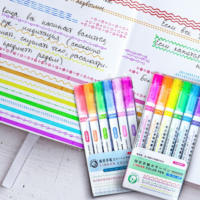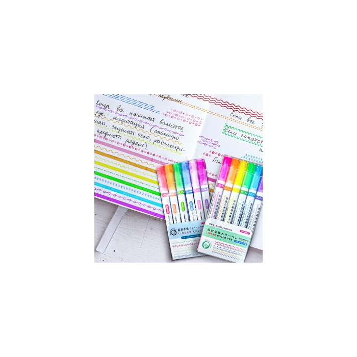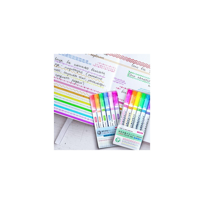 • Bút huỳnh quang lặp lại nhiều màu đơn/đôi để trang trí ghi chú 6 màu