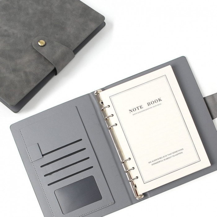 • Sổ tay loại sổ da vừa vặn (A5) (màu xám) nhật ký kinh doanh