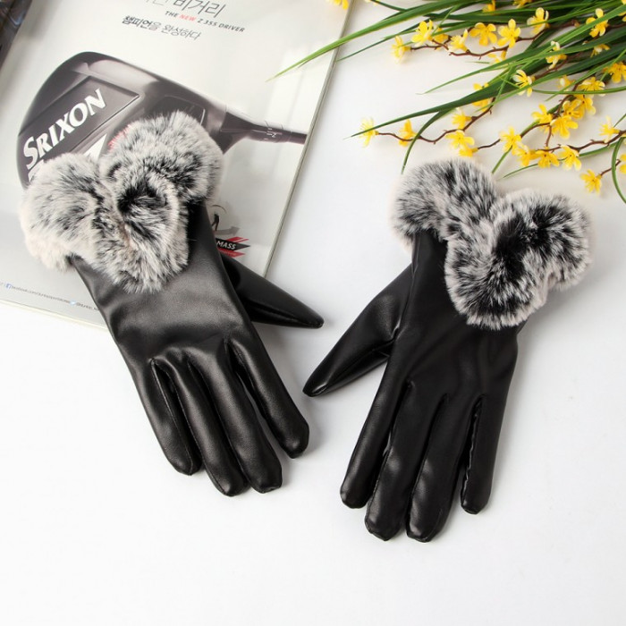 • Găng tay da lông lãng mạn Găng tay mùa đông nữ